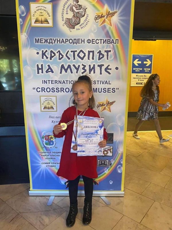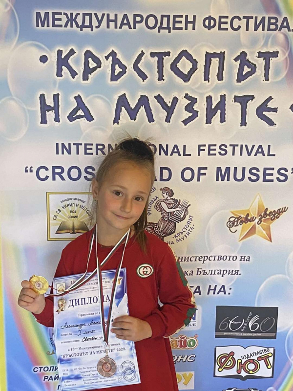 Александра Александрова от град Костинброд спечели златен медал и 1-во място в 18-ия Международен фестивал на изкуствата „Кръстопът на музите“ 2022. Александра спечели престижното отличие в направление световен хит.