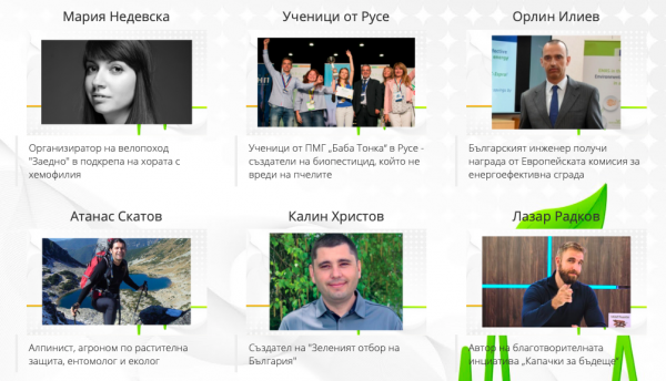 Сред номинираните за приза тази година бяха още: Мария Недевска, Организатор на велопоход "Заедно" в подкрепа на хората с хемофилия, Ученици от ПМГ „Баба Тонка“ в Русе - създатели на биопестицид, който не вреди на пчелите, Българският инженер Орлин Илиев, който получи награда от Европейската комисия за енергоефективна сграда, Създателят на "Зеленият отбор на България" Калин Христов и Лазар Радков, автор на благотворителната инициатива „Капачки за бъдеще“.