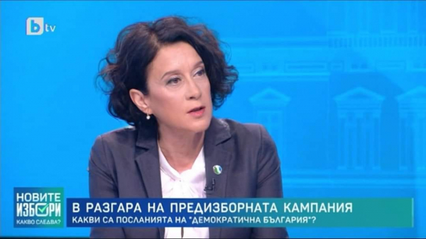 На въпрос на водещия в студиото на Би Ти Би, дали при една нова коалиция между трите формации споразуменията отново ще са двустранни с мандатоносителя, за да се избегне директна коалиция с БСП, Антоанета Цонева отговори, че по-важно от това къде ще стоят подписите е, че „Демократична България“ ще отстоява категорично дневния си ред на масата на преговорите. „Ще отстояваме твърдо ключови различия с БСП като позициите ни за „Газпром“ и за Украйна. За това искаме подкрепа от избирателите. България не може да има управление без „Демократична България“. Колкото по-голяма сила получим чрез подкрепата на гражданите, толково по-добре ще може да отстояваме дневния си ред, за да има един закон за всички и България да бъде чиста от корупция“, категорична бе Антоанета Цонева.