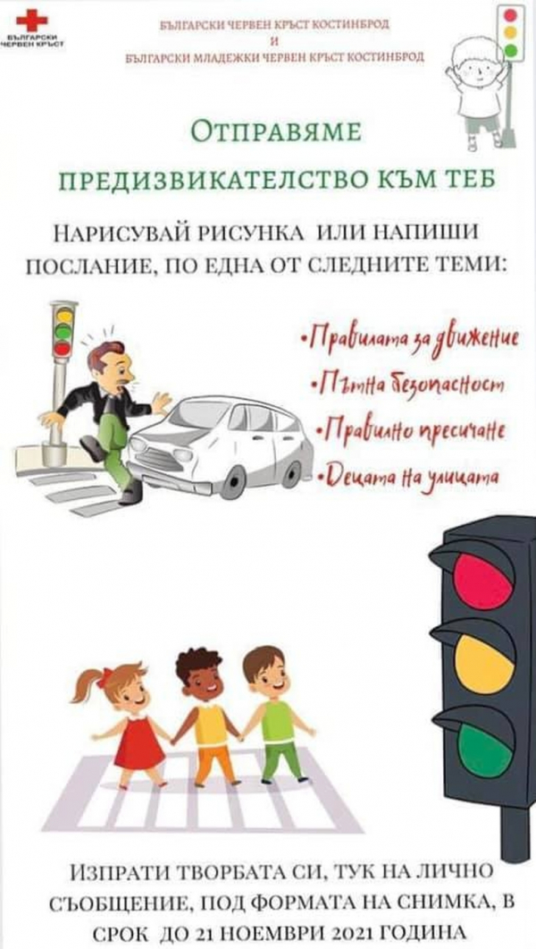 Български червен кръст Костинброд и Български младежки червен кръст Костинброд обявяват инициатива по повод 21 ноември 2021 г., когато се отбелязва Световния ден за възпоменание на жертвите от пътнотранспортни произшествия.