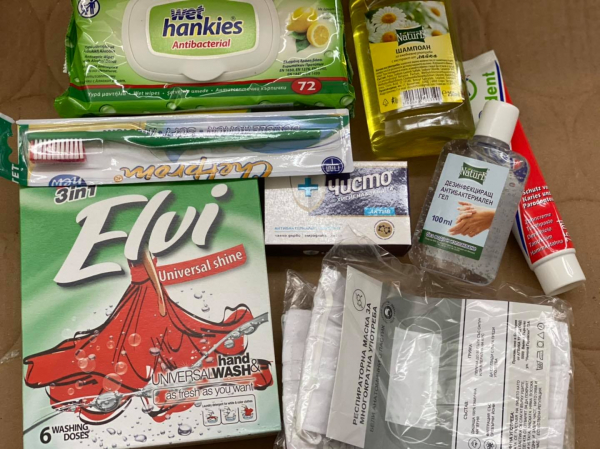 Общото тегло на един хранителен пакет е 20 кг и съдържа следните хранителни продукти: олио, ориз, леща, боб, спагети, захар и брашно. Хигиенният пакет съдържа: предпазни маски, дезинфектант за ръце, сапун, паста и четка за зъби, шампоан, мокри кърпички със спирт и прах за пране.