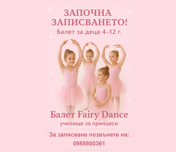 Балетна школа „Fairy dance“ към НЧ „Иван Вазов – 1947“ в Костинброд започва записване на деца за новата учебна година. Школата приема момичета и момчета на възраст от 4 до 12 години, които обичат музиката, движението и красивото изкуство на танца. Заниманията се водят от педагози с професионален опит и предлагат напълно професионално обучение по класически балет – изкуство, което развива не само тялото, но и характера на децата.