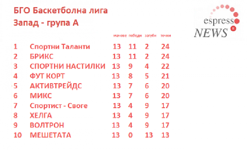 13-ят кръг на БГО Баскетболна лига, се оказа фатален за баскетболистите на "Спортист" Своге. Те загубиха мача си срещу тима на "МИКС" с 68:70 точки.