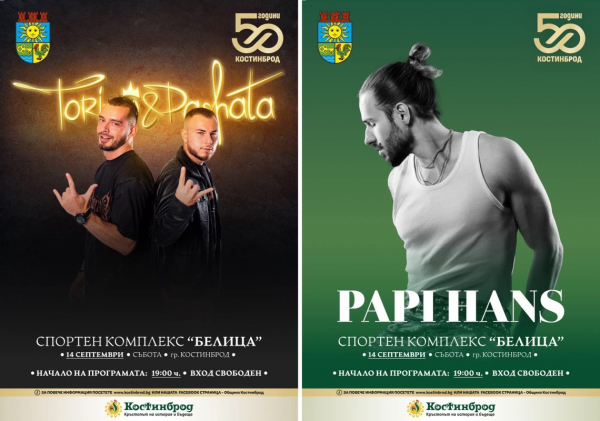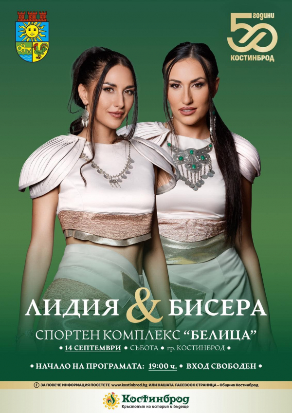На 14 септември, фолклорният дует Бисера и Лидия ще открие честванията по повод Празника на Костинброд. От 19.00 часа в Спортен комплекс „Белица“ ще се състои вечер, изпълнена с музика, емоции и добро настроение. В концертна програма ще участват още Торино & Пашата и Папи Ханс.