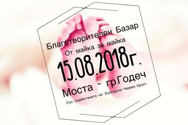 Благотворителен базар за употребявани детски дрехи и стоки „От майка за майка“ организират в Годеч. Той ще се проведе на 15 август /сряда/ от 08:00 ч/ на моста в центъра на Годеч.