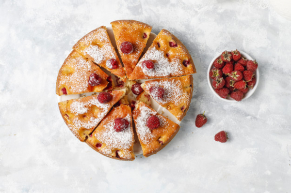 Готовият сладкиш има хрупкава коричка, а вътре крем с нежна консистенция. По желание, украсете със сметана и сезонни плодове.