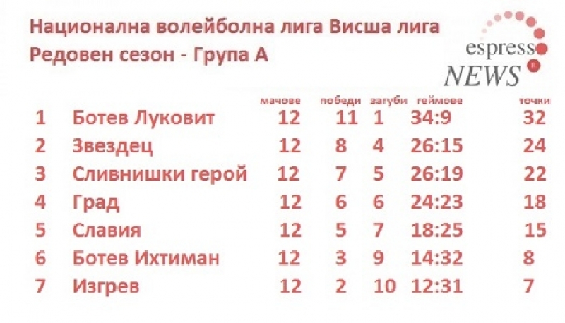 Със загубата ВК "Сливнишки герой" завърши редовния сезон на 3-то място, след като през седмицата "Звездец" Горна Малина спечели отложения си мач и мина на 2-ро място.