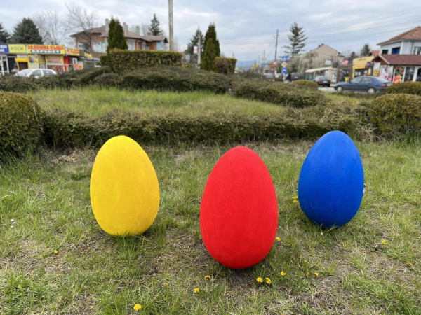 Украсяването с 14 изрисувани стиропорени яйца започна, и Костинброд вече е готов да посрещне Великденските празници. През следващите дни яйца ще бъдат поставени в село Петърч, Голяновци и Драговищица.