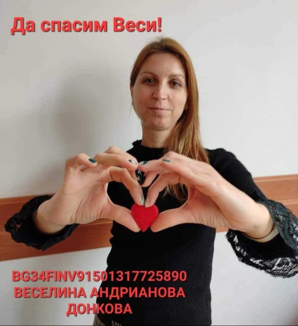 Можете да помогнете на Веселина, като дарите средства по дарителска сметка: