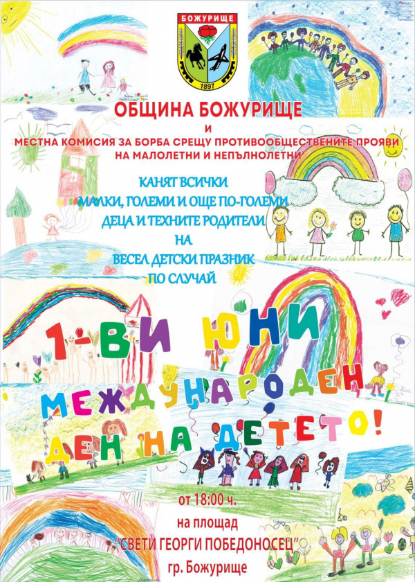 Община Божурище и Местната комисия за борба срещу противообществените прояви на малолетните и непълнолетните ще зарадват всички малки, големи и още по-големи деца на весел празник и концерт по повод Деня на детето.