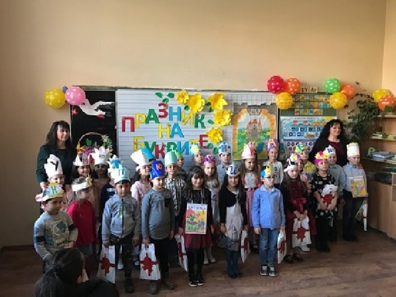 И тази година, под ръководството на техните класни ръководители – Светла Велкова и Александра Андреева, учениците изнесоха рецитал на буквите. Традиционно първокласниците носеха корони, направени от хартиен материал, с изобразени на тях буквите от кирилицата.