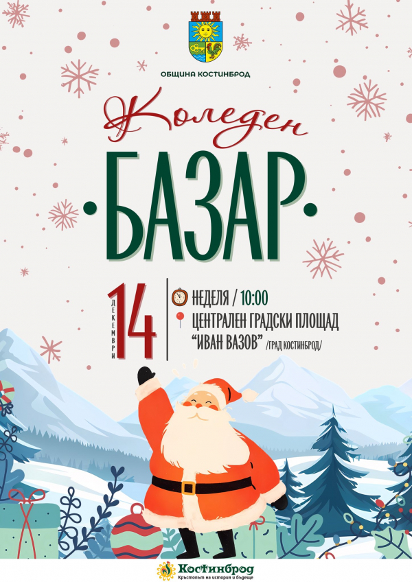Костинброд се подготвя за един от най-очакваните моменти от декемврийския календар – традиционния Коледен базар, който също ще се проведе на 14 декември (неделя) от 10:00 ч. на централния градски площад. На специално обособените щандове ще бъдат представени ръчно изработени коледни изделия, създадени както от деца, така и от възрастни творци от общината.