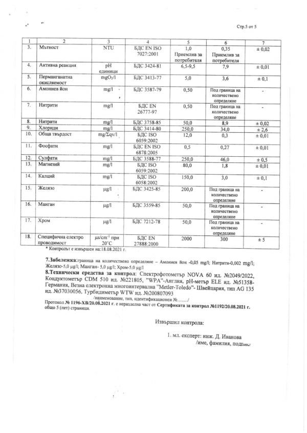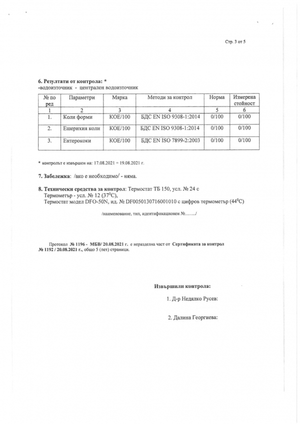 Видно от протокола на РЗИ, водата отговаря на изискванията на Наредбата "за качество на водата, предназначена за питейно-битови цели".