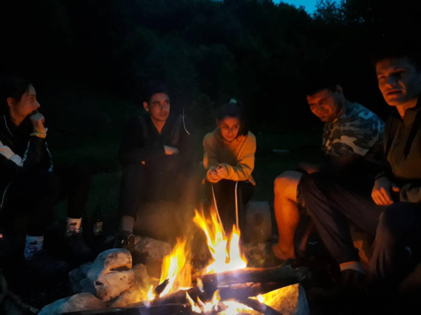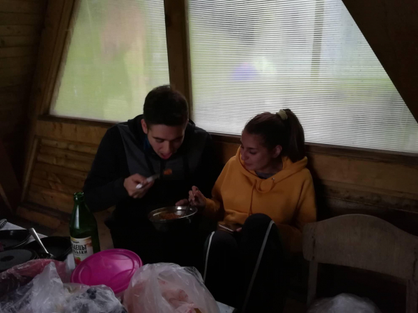 С последни сили се вмъкваме в малката къщичка, построена като пристан на всеки турист, решил да пренощува в близост до Боров камък. Вътре има масичка и барбекю. Страхотно! Залавяне се за работа - момичетата ще приготвим вечерята, а момчетата ще построят лагера. Когато всичко е готово, навън вече се е стъмнило. Сенките, които се образуват от растителността са главозамайващи - стряскащи, но и магични. Пътят към воденицата ни се струва много по-дълъг от преди няколко часа. Там виждаме, че има човек, а навън ни посрещат няколко кучета, лаят им в тази тишина е оглушителен и ние се стараем да сме възможно най-бързи, за да не ги притесняваме.