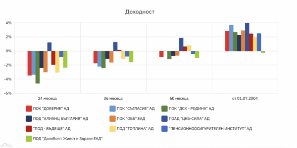 Посочените по-горе резултати обхващат твърде кратък период, за да имат значение в дългосрочен план, а осигуряването във втория стълб е именно такова. Погледнато в рамките на целия период, в който доходността се изчислява по настоящия начин - от 1 юли 2004 г. насам, доходността на деветте фонда е положителна ("ДаллБогг" тук не е посочен поради твърде късата му история).