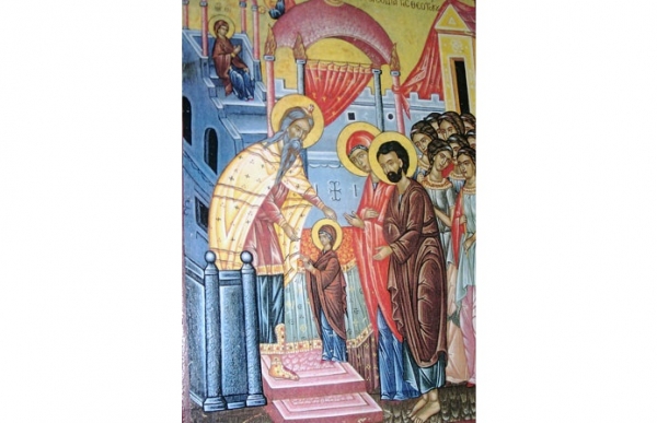 Според преданията, на този ден Богородица била обречена от своите родители на Бога още преди рождението си, а когато навършила три години, била отведена до Йерусалимския храм. По време на пътя, тя и нейното семейство били съпроводени от своите близки, носещи запалена свещ в ръцете си. Всички останали изумени, когато родителите й я оставили на първото стъпало на храма и тя изкачила съвсем сама 15-те му стъпала. На най-горното стъпало с благословия я посрещнал Първосвещеник Захария, баща на Св. Йоан Кръстител.