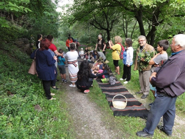 Тако както традицията повелява деца и възрастни минаха под еньовския венец, измиха се за здраве със студената вода от местното кладенче, опитаха от еньовата пита, а накрая всички се включиха в изписването на името на Бов с билки.