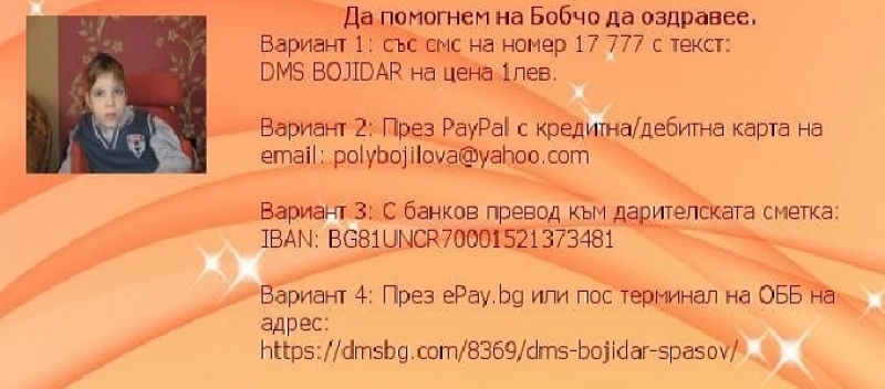 Дарителска сметка за Бобчо: BG81UNCR70001521373481