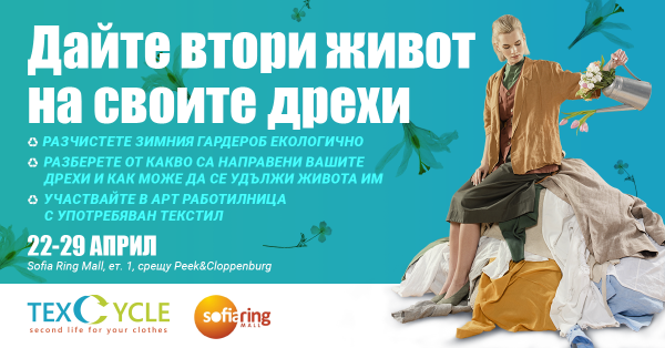 На 22 април (събота) по случай Деня на Земята българският бранд TexCycle, който е специализиран в събиране, сортиране, дистрибуция и рециклиране на употребявани дрехи, обувки и други текстилни изделия ще стартира кампания за събиране на дрехи в София. Тя ще се проведе в Sofia Ring Mall от 22 до 29 април, където всеки желаещ ще може да предаде ненужните вече дрехи и да научи повече за това как да удължи живота им и какво става с тях след като попаднат в контейнерите за дрехи.