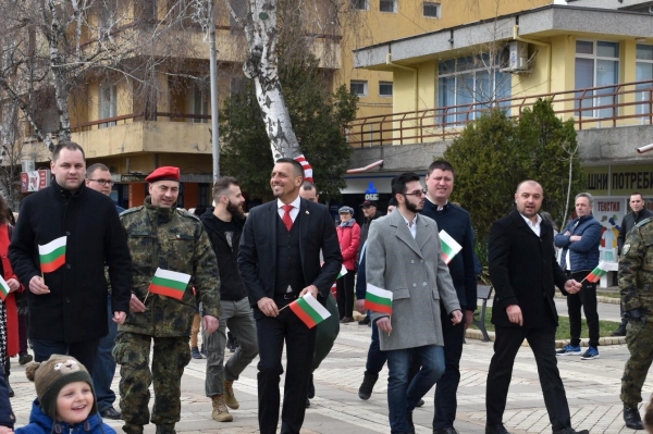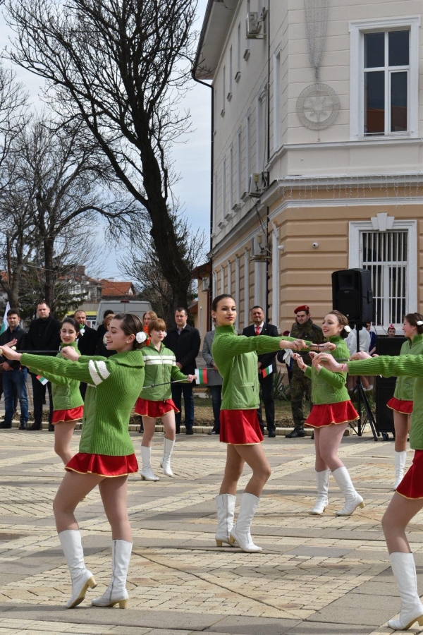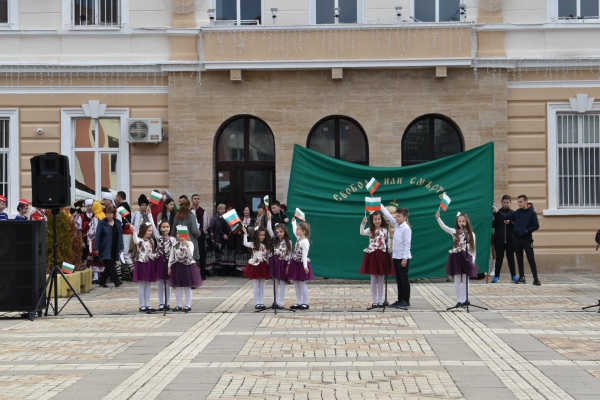 След като бяха раздадени знамена на малки и големи, програмата беше открита с изпълнение на песента „Даваш ли, даваш, Балканджи Йово“ по текст на Петко Славейков. Програмата продължи с издигането на трибагреника от военнослужещите и едноминутното мълчание в името на всички, жертвали се за свободата на Отечеството.