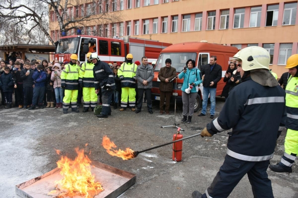 С демонстрация на действия при пожар в СУ „Д-р Петър Берон“