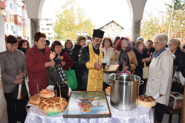 В новостроящия се храм, който носи името на светеца, беше отслужен водосвет за здраве