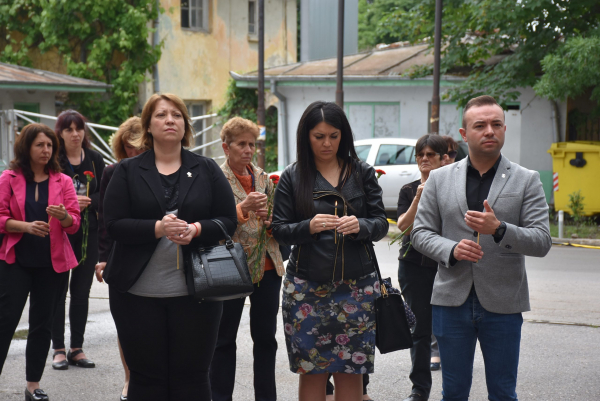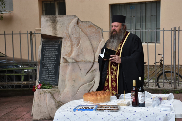 Пред паметника на загиналите в производствената авария, бяха поднесени цветя и венци, а отец Дамян отслужи заупокойна молитва в памет на 18 – те жертви от експлозията в завода.