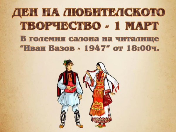 На 1 март отбелязваме Деня на самодееца и любителското художествено творчество. На този ден празнуват хората, които отдават време и сили и упорито работят за запазване на българските традиции, култура и дух.