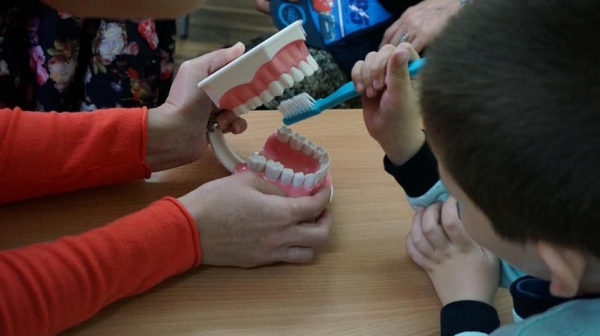 Първи етап бе предназначен за децата от детската градина, на които д-р Чинарска извърши практическо обучение на методите на оралната хигиена и нагледно показа как би трябвало да се мият зъбките. За целта използва специално изработен макет, като след нейната демонстрация децата сами споделиха наученото.
