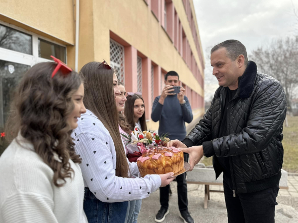 Освен топло посрещнати, с домашна погача и приветливо отношение, ръководството на костинбродското училище, поднесе специални подаръци на гостите си, символизиращи свързаността със земята, плодородието и връзката на човека с природата.