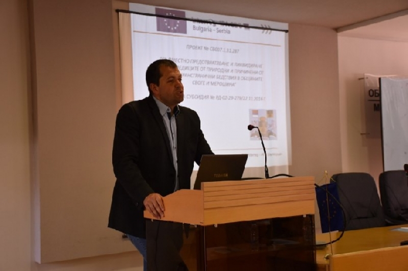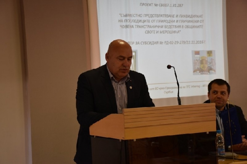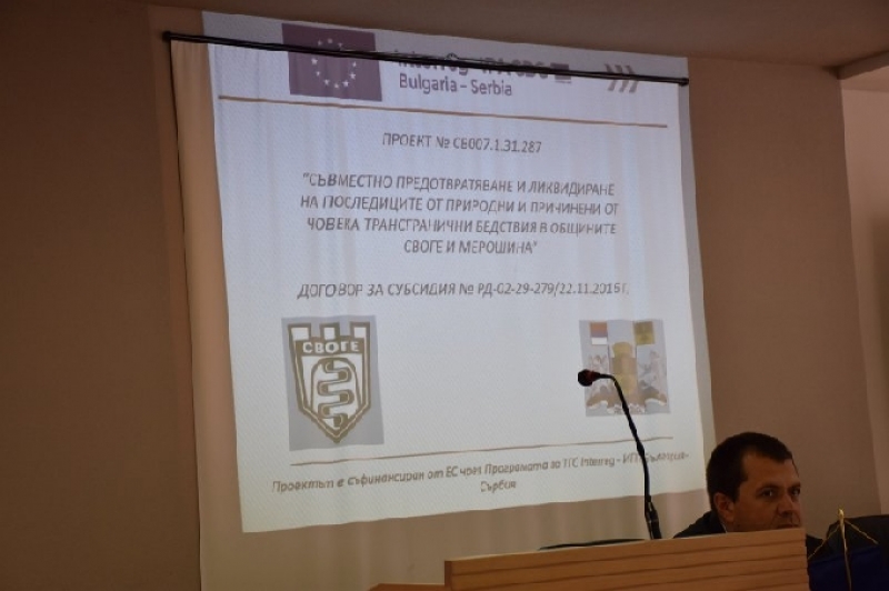 Първата пресконференция по проекта „Съвместно предотвратяване и ликвидиране на последиците от природни и причинени от човека трансгранични бедствия в общините Своге и Мерошина“ се проведе на 1 юни в заседателната зала на Професионална гимназия „Велизар Пеев“.