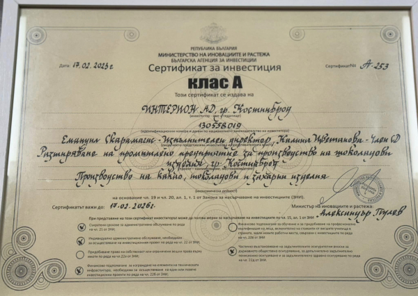 Инфраструктурата се изгражда във връзка с изпълнението на сертифицирания по ЗНИ инвестиционен проект „Разширяване на промишлено предприятие за производство на шоколадови изделия“ в гр. Костинброд на „Интерион“ АД. Инвестицията по проекта е в размер на 10.5 млн. лв.