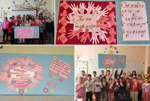 Учениците от прогимназиален етап изработиха табла и послания до учениците и учителите, в които изразяват своето несъгласие с насилието и тормоза в училище.