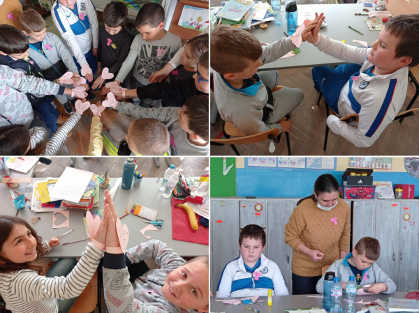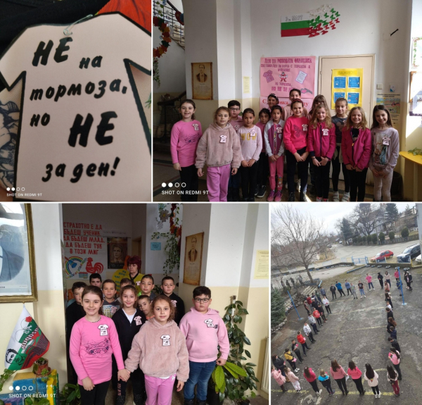 Денят на розовата фланелка в ОУ „Отец Паисий“, с. Петърч бе отбелязан с изработката на различни табла, а в двора на училището бе оформено сърце от розови балони.