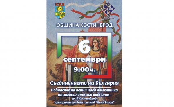 С две тържествени церемонии и полагане на венци и цветя, в община Костинброд ще отбележат 134 години от Съединението на България с Източна Румелия.