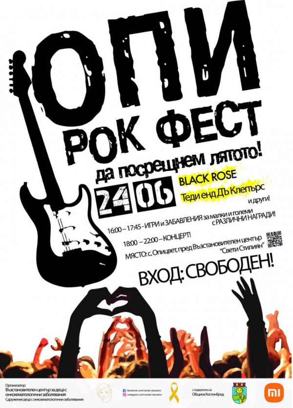 Костинбродското село Опицвет ще бъде домакин на първото издание на Опи Рок Фест. Събитието ще се проведе на 24 юни 2023 г., а негов организатор е Възстановителен център за деца с онкохематологични заболявания със съдействието на община Костинброд. Ето и програмата на феста: