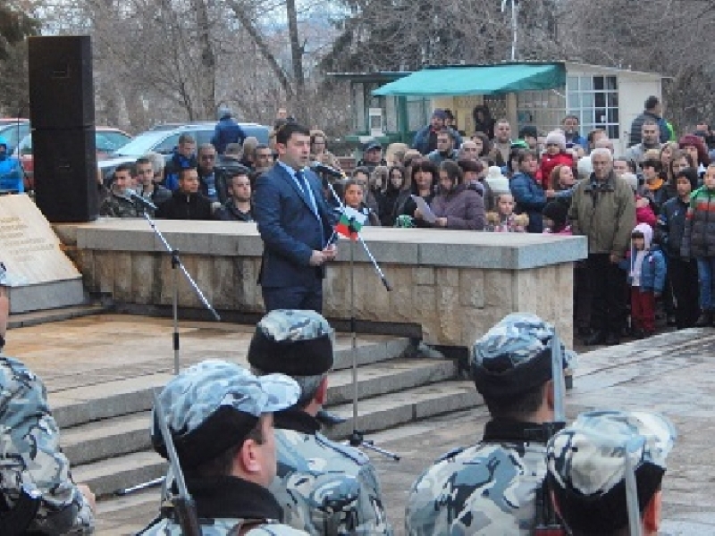 Деца от студиото по Художествено слово към читалището с ръководител Антония Костова рецитираха стихове от Ботеви произведения –“Хайдути“ и “На прощаване“. Ученици от гимназията, под ръководството на командващия парада запалиха факли, които осветиха паметника и събралите се да почетат празника. Методий Кирилов и Ирена Евстатиева, ученик в СУ „Проф. д-р Ангел Златаров“ произнесоха имената на загиналите за Освобождението на България наши съграждани. Командващият парада призова всички да отдадат почит на загиналите за свободата на България с едноминутно мълчание .