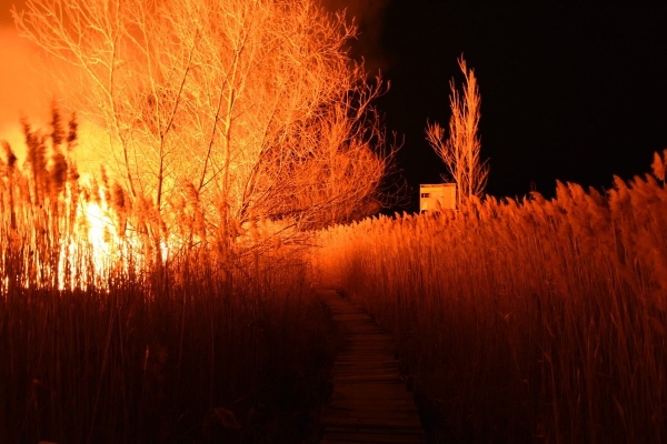 Освен растителността пламъците са унищожили и туристическите съоръжения, включително кулата, от която се наблюдават птиците, както и мостчетата за разходка, които водят до водните огледала.