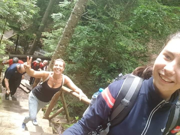 Предупреждаваха ни да внимаваме за мечки, но аз не се страхувах. Бях погълната от това което виждах, което усещах. Природата беше навсякъде. Дърветата застрашително се извисяваха над нас, тревата мокреше обувките ни и имаше много животни ( от малки гущерчета които не се страхуваха от нас, до по-големи животни на които правехме път да минат). Продължавахме да се изкачваме нагоре, като крайната ни цел беше най-високата точка, която дава изглед към града.