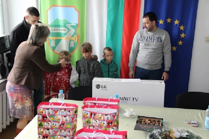 Две семейства с тризнаци от Драгоман с подаръци за Коледа