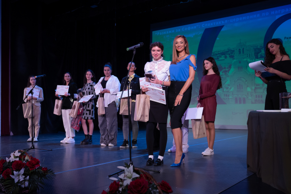 Деница Василева, ученичка в 10. клас в Първа английска гимназия и Анна Тенева, ученичка в 9. клас в 90. СУ „Генерал Хосе де сан Мартин“, София са големите победители в ученическия конкурс-обучение „Работилница за творческо писане – Разкажи за София“. Това стана ясно по време на специална церемония-спектакъл, която се проведе на 26-ти октомври, на голямата сцена на Общински културен дом „Искър“, в ж.к. „Дружба 1“.