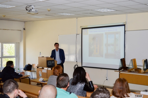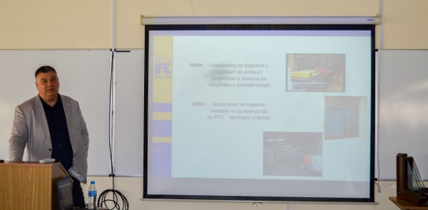 Г-н Николчев запозна аудитория с условията на стажантсаката програма и с историята, постиженията и предстоящите планове за развитие на „Ролпласт Груп“ АД, които включват разширяването на производствения комплекс с административна и складова база, линия за прахово боядисване, машини за собствено производство на външни ламелни щори, нова линия за производство на PVC прозорци и врати, общежитие за служители и др.