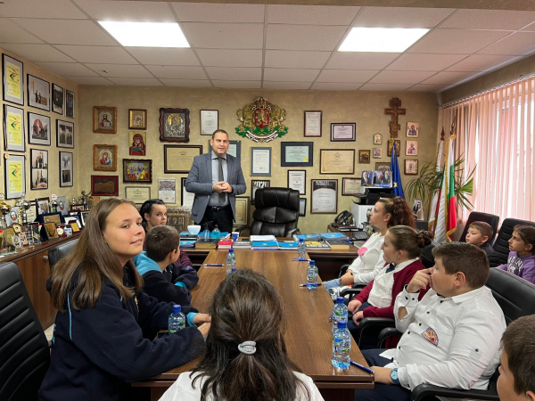 Те бяха ръководители и служители в община Костинброд. Учениците изтеглиха жребий с длъжности в кабинета на кмета, запознаха се с функцията и отделите в общината.