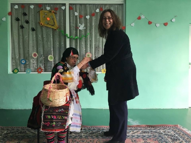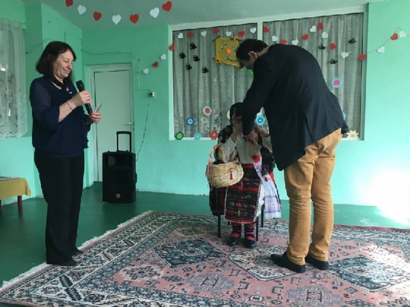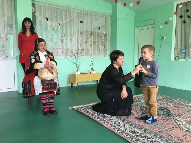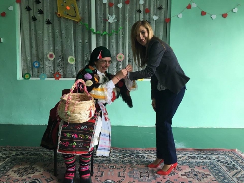 Те също окичиха с мартенички малките сладури, пожелавайки им да бъдат здрави, румени и засмени. Баба Марта не пропусна и представителите на местната власт, закичвайки ги с мартеници.
