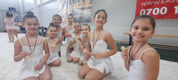 Децата от клуб по художествена гимнастика „Божури“ с медали от зимния турнир „Коледни Ангели“ (снимки)