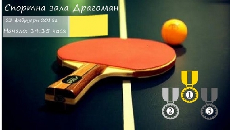 Турнир по тенис на маса за деца от V до VII клас ще се проведе в Драгоман този петък. Спортната зала в града ще събере на 23 февруари 2018 г. (петък) желаещите да премерят сили в надпреварата. Началният час на състезанието е 14:15 часа.
