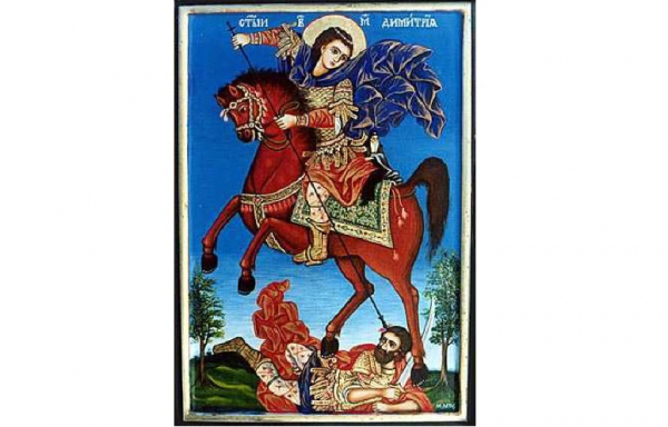 Св. Димитър се родил в трети век в Солун. Баща му бил градоначалник. Когато Димитър поотраснал и можел да разбира истината, родителите го въвели в молитвената стая и започнали да го учат на вярата в Господ Исус Христос. Повикали свещеник и го кръстили Димитър. След кончината на родителите си Димитър заел висок военен пост и получил заповед да преследва християните. Вместо това той ги покровителствал. На връщане от поход на Изток император Максимилиан спрял в Солун и поискал Димитър да се откаже от вярата в Христа, но увещанията били напразни. Хвърлили го в тъмница. Загинал мъченически през 306 година - прободен с копие.