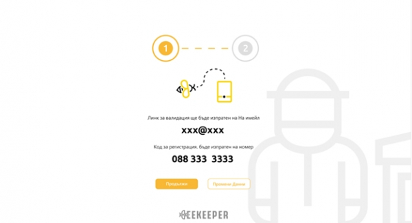 Системата извършва проверка за валидност на e-mail адреса, номера на сертификата и на пчелина. При успешна валидация се изпраща e-mail с линк за активация на профила, а ако е избрана роля „Фермер“ се изпраща и СМС с код за валидация до мобилният номер от сертификата. Преди изпращане, потребителят трябва да потвърди данните.