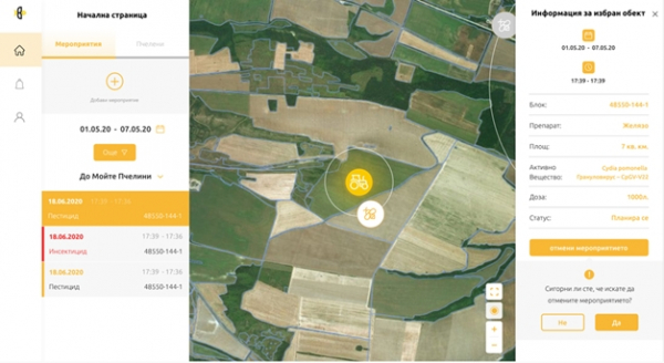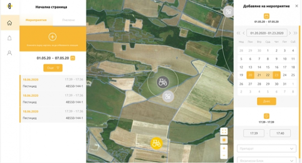 При избор на конкретно мероприятие, се визуализират детайли за него, с възможност за промяна на данните. 1.7. Добавяне на ново мероприятие. При избор на ново мероприятие, потребителя трябва да избере чрез локация от картата, блокът от СИЗП, в който ще бъде извършвано мероприятието, дата, начален и краен час, продукт, площ, доза и култура.