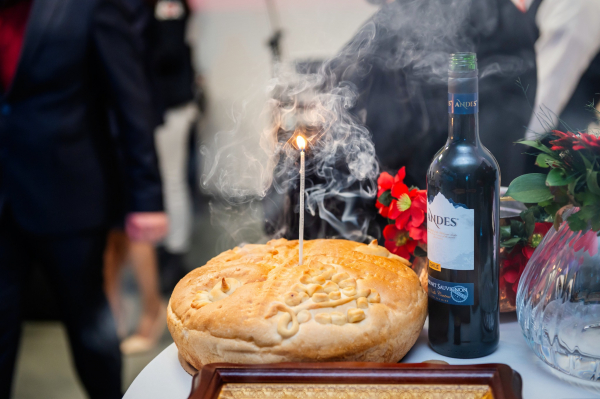 Преди прерязването на трикольорната лента, отец Николай от храм „Св. Св. Кирил и Методий“ освети сградата и прочете молитва за здраве и благополучие.